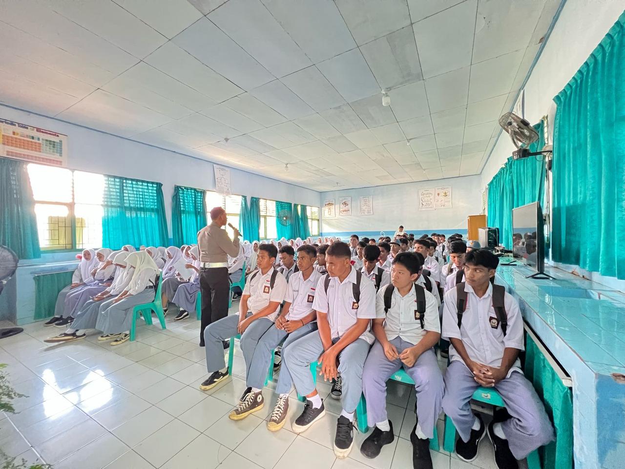 Guna meningkatkan kesadaran generasi muda akan pentingnya etika dan keselamatan berlalu lintas, Subdit Kamsel Ditlantas Polda Maluku Utara menyelenggarakan kegiatan “Polantas Goes to School” di SMA Negeri 3 Kota Ternate, Jumat (2/5).