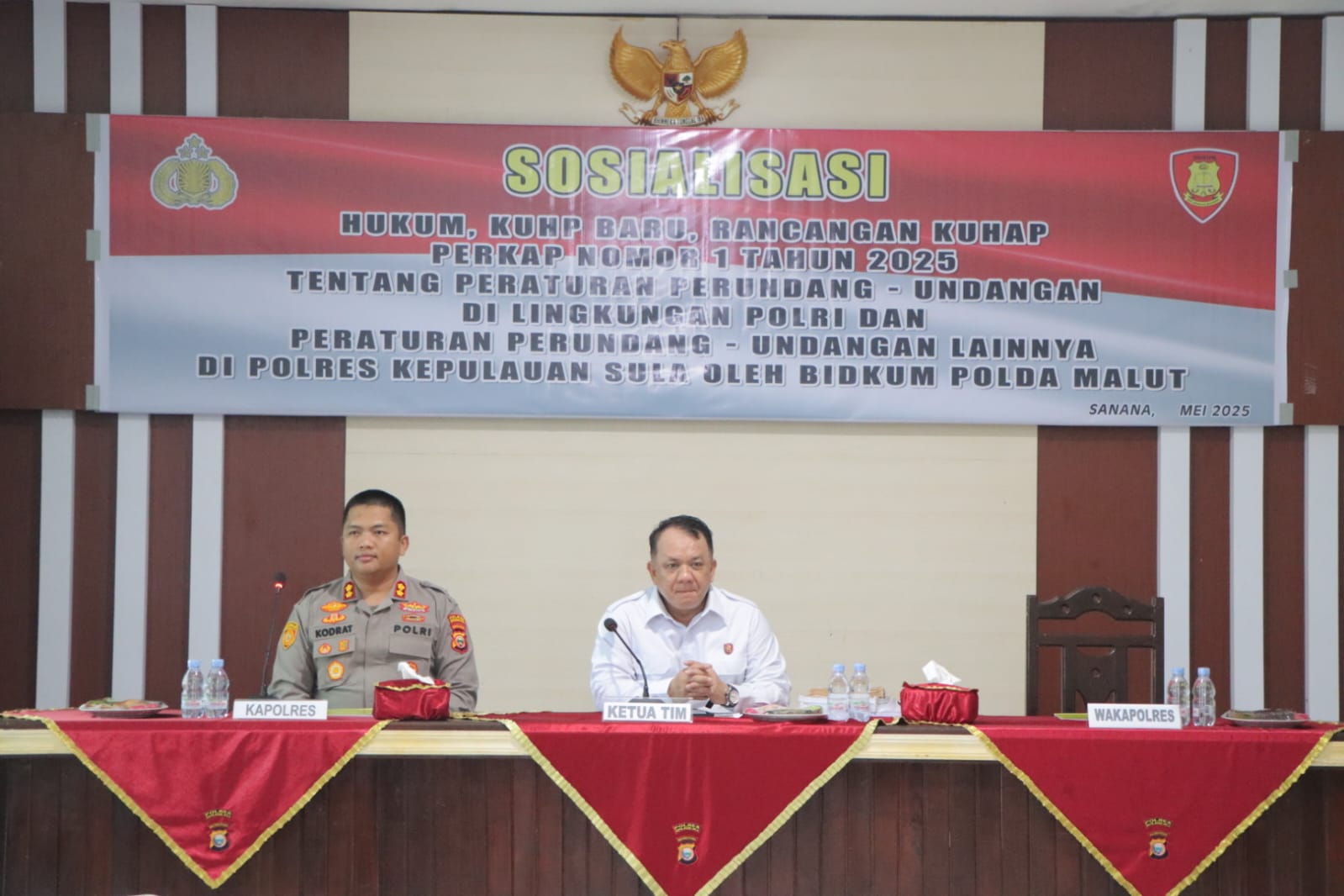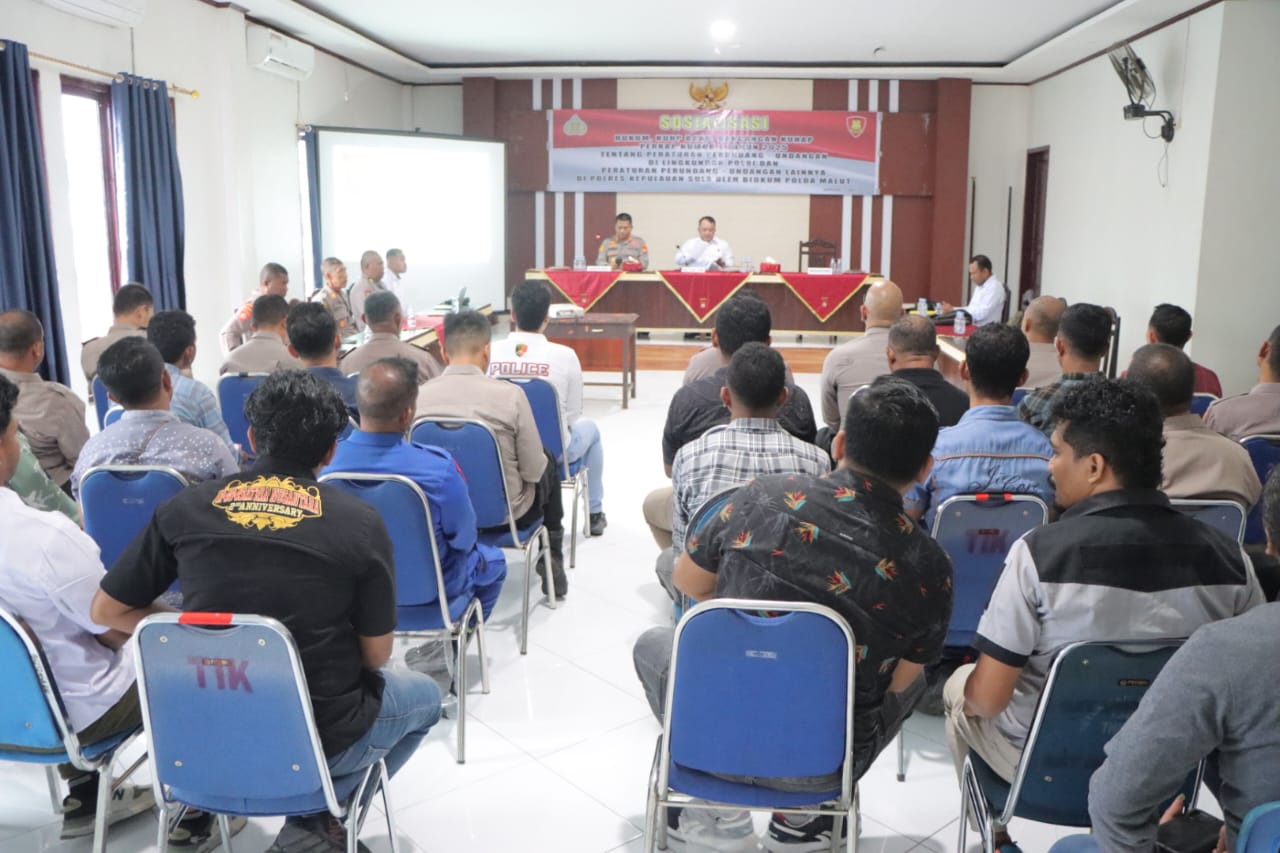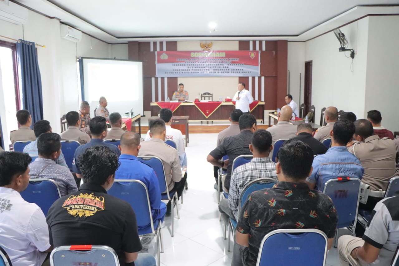 Polres Kepulauan Sula melaksanakan kegiatan Sosialisasi dan Penyuluhan Hukum yang diinisiasi oleh Bidang Hukum (Bidkum) Polda Maluku Utara, bertempat di Aula Polres Kepulauan Sula pada Kamis, (22 Mei 2025).