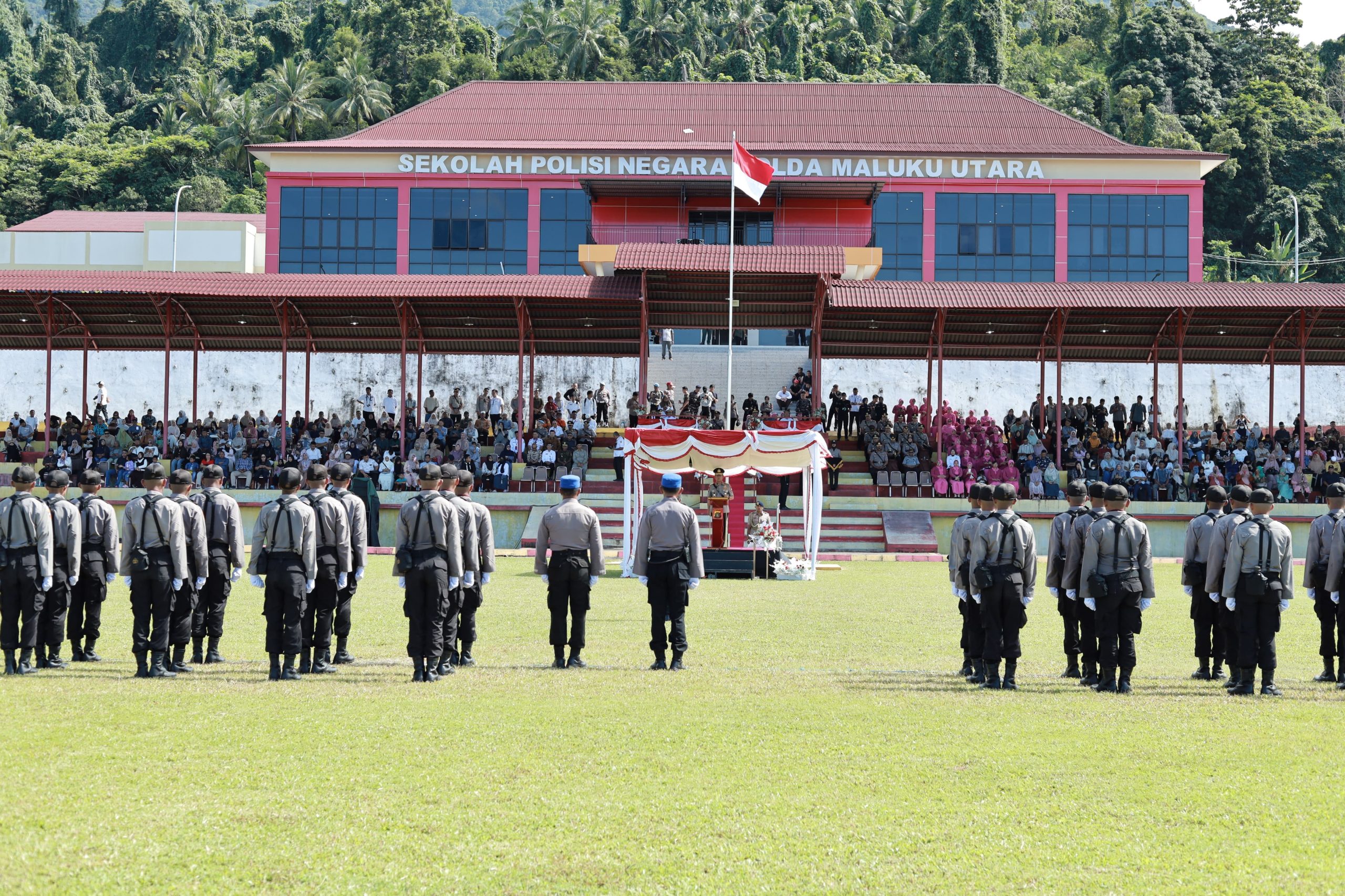 Upacara tersebut dipimpin langsung oleh Kapolda Maluku Utara, Irjen. Pol. Drs. Waris Agono, M.Si., selaku Inspektur Upacara, yang menandai secara resmi dimulainya pendidikan calon Bintara Polri untuk periode tahun 2025-2026.