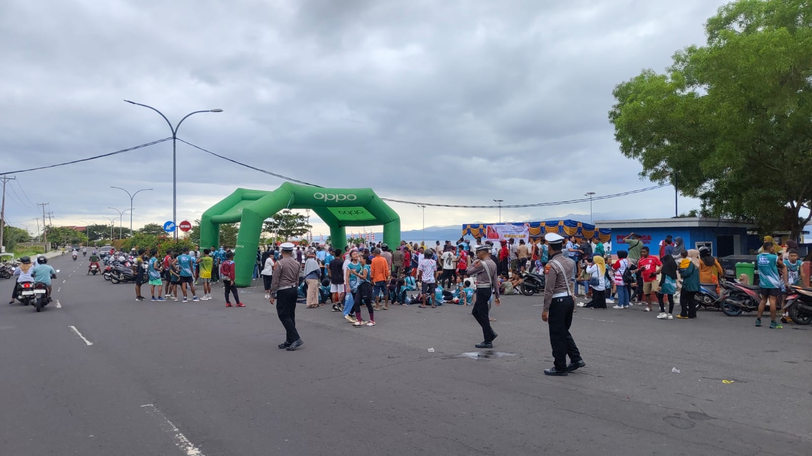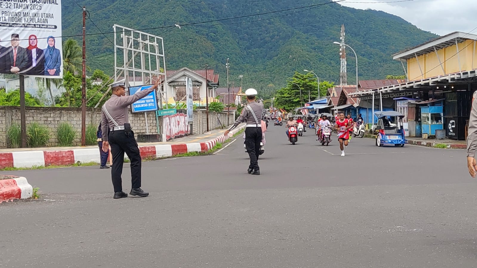 Personel Polresta Tidore bersama jajaran terkait melaksanakan pengamanan berupa pengawalan serta penjagaan di sepanjang jalur yang dilalui peserta. Hal ini dilakukan guna memastikan seluruh rangkaian kegiatan berlangsung aman, tertib, dan lancar hingga selesai.