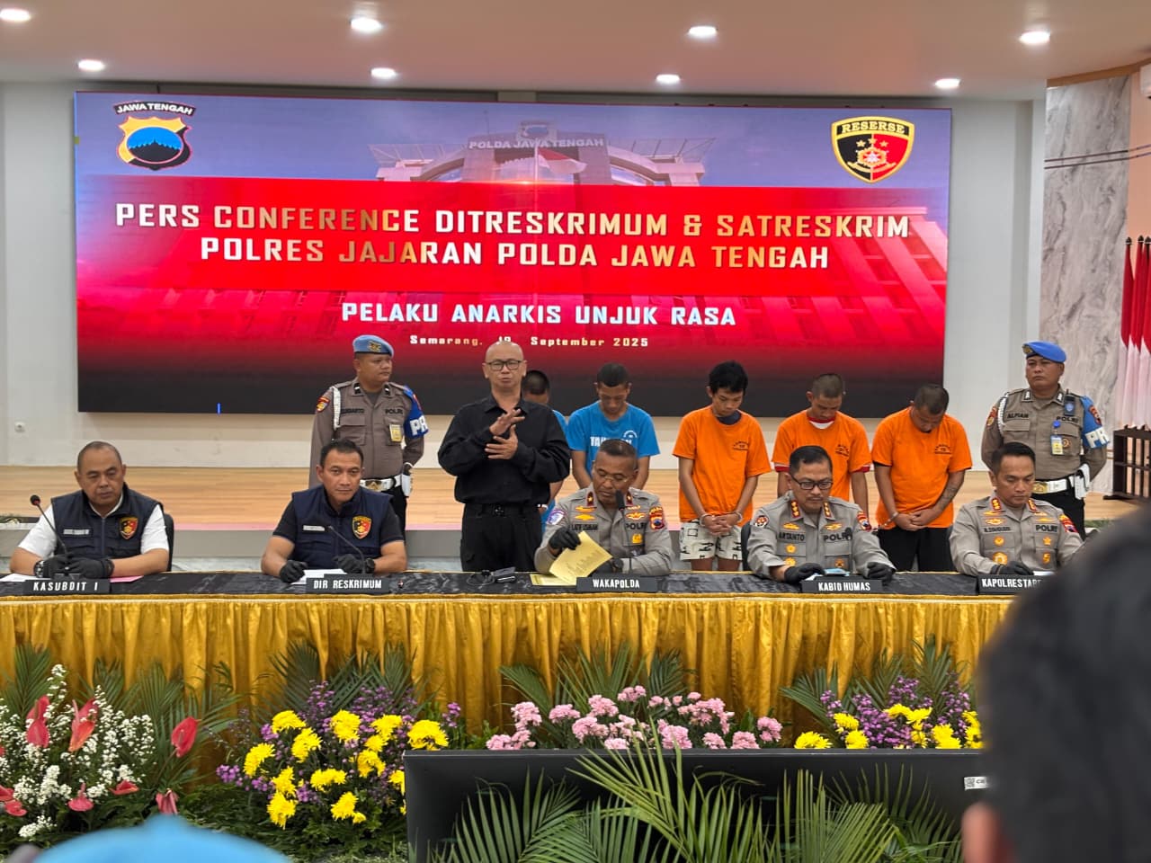 Polda Jawa Tengah menegaskan kembali, aparat kepolisian tidak mengamankan massa aksi damai, melainkan hanya pelaku kerusuhan yang terbukti melakukan tindak anarkis. Penegasan ini disampaikan Wakapolda Jateng Brigjen Pol Latif Usman dalam konferensi pers di Gedung Borobudur Mapolda Jateng, Jumat (19/9/2025) siang.