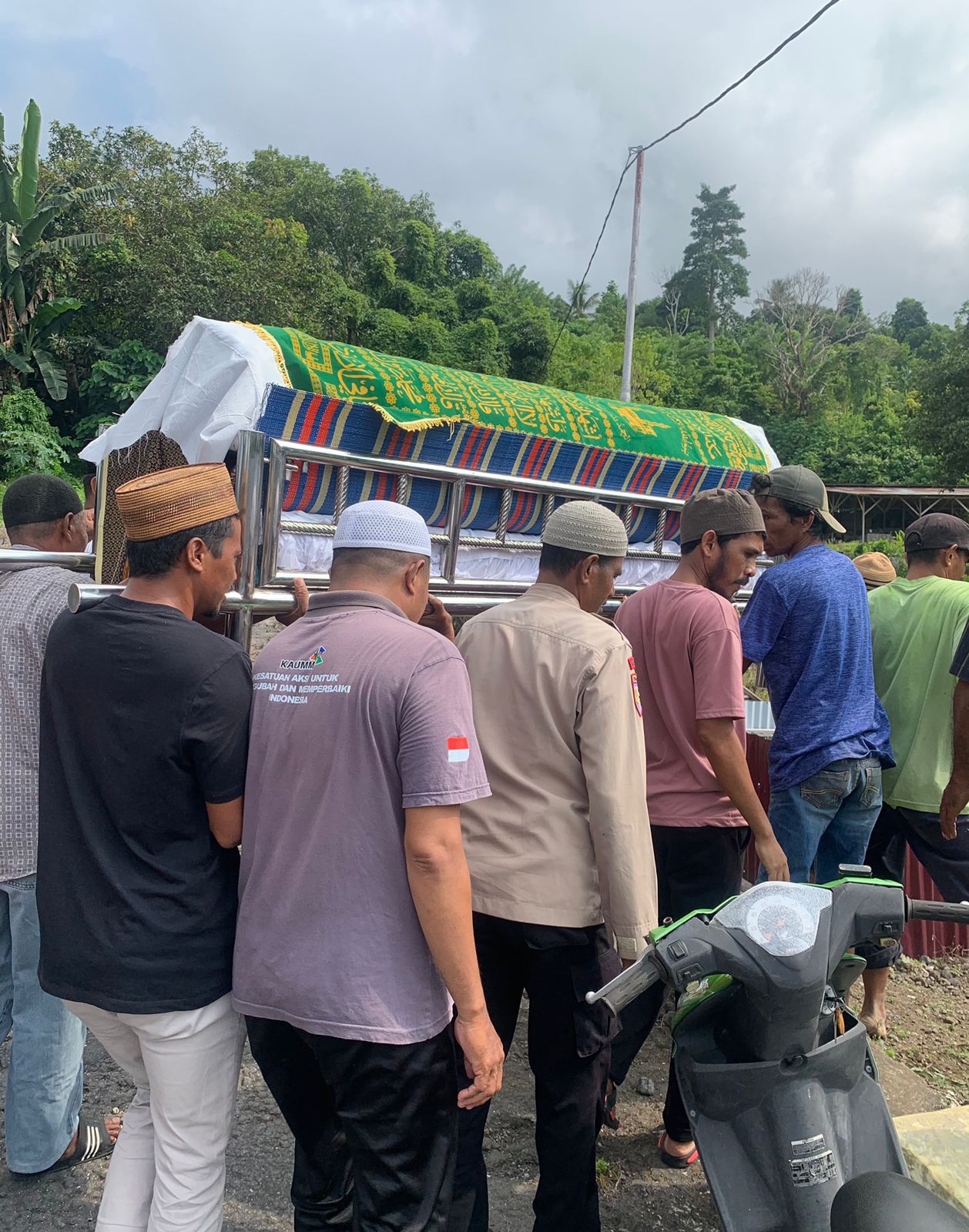 Sebagai bentuk empati, Bhabinkamtibmas Kel.Tomalou turut menyampaikan belasungkawa kepada keluarga yang ditinggalkan. “Kami dari pihak Kepolisian turut berduka cita yang sedalam-dalamnya. Semoga keluarga yang ditinggalkan diberikan kekuatan dan ketabahan dalam menghadapi cobaan ini.” Ujarnya