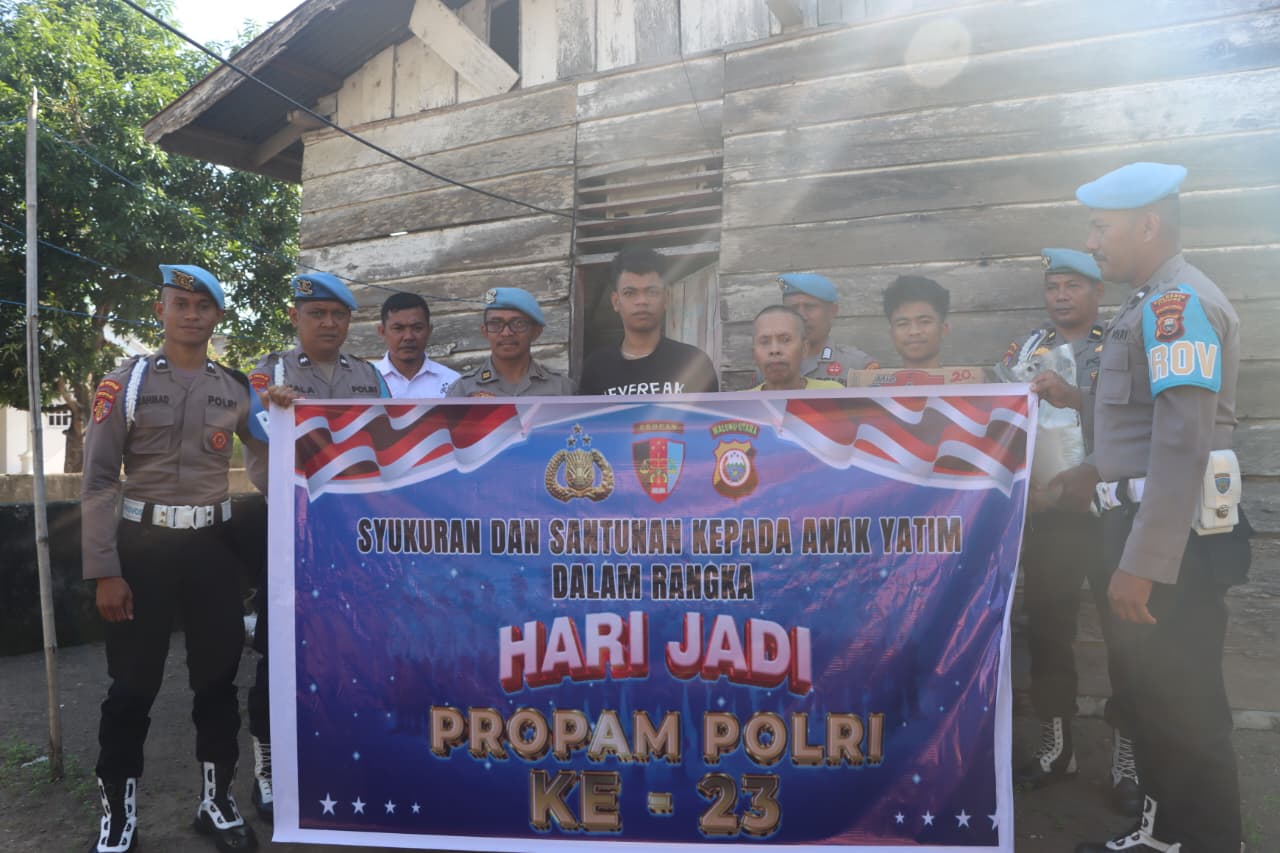 Tidore – Dalam rangka memperingati Hari Ulang Tahun (HUT) Propam Polri ke-23, Seksi Profesi dan Pengamanan (Propam) Polresta Tidore melaksanakan kegiatan bakti sosial dengan membagikan paket sembako kepada masyarakat yang membutuhkan serta memberikan santunan kepada anak yatim, Jumat (17/10/2025).