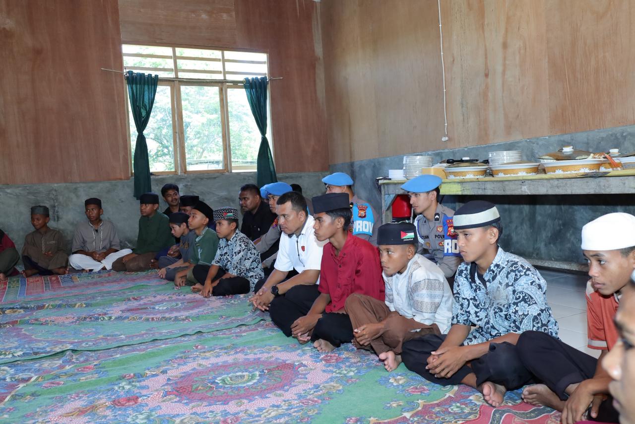 Kabid Propam Polda Malut, Kombes Pol. Indrapramana H., S.I.K., turut hadir bersama Kasubbid Wabprof, AKBP Syamsul Alam, S.H., serta sejumlah personel Bidpropam lainnya. Dalam suasana sederhana namun penuh makna, para anggota Propam berbagi kebahagiaan dengan anak-anak pesantren.