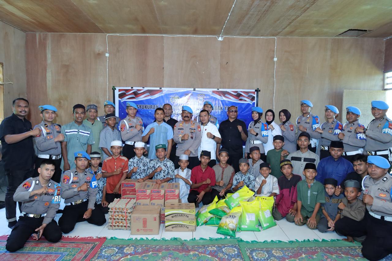 HUMAS POLDA MALUT – Bidang Profesi dan Pengamanan (Bidpropam) Polda Maluku Utara menggelar kegiatan syukuran dan pemberian santunan kepada anak yatim dalam rangka memperingati Hari Jadi Propam Polri ke-23. Kegiatan berlangsung khidmat di Pondok Pesantren Ummul Quro, Akekolano, Jumat (17/10/2025).