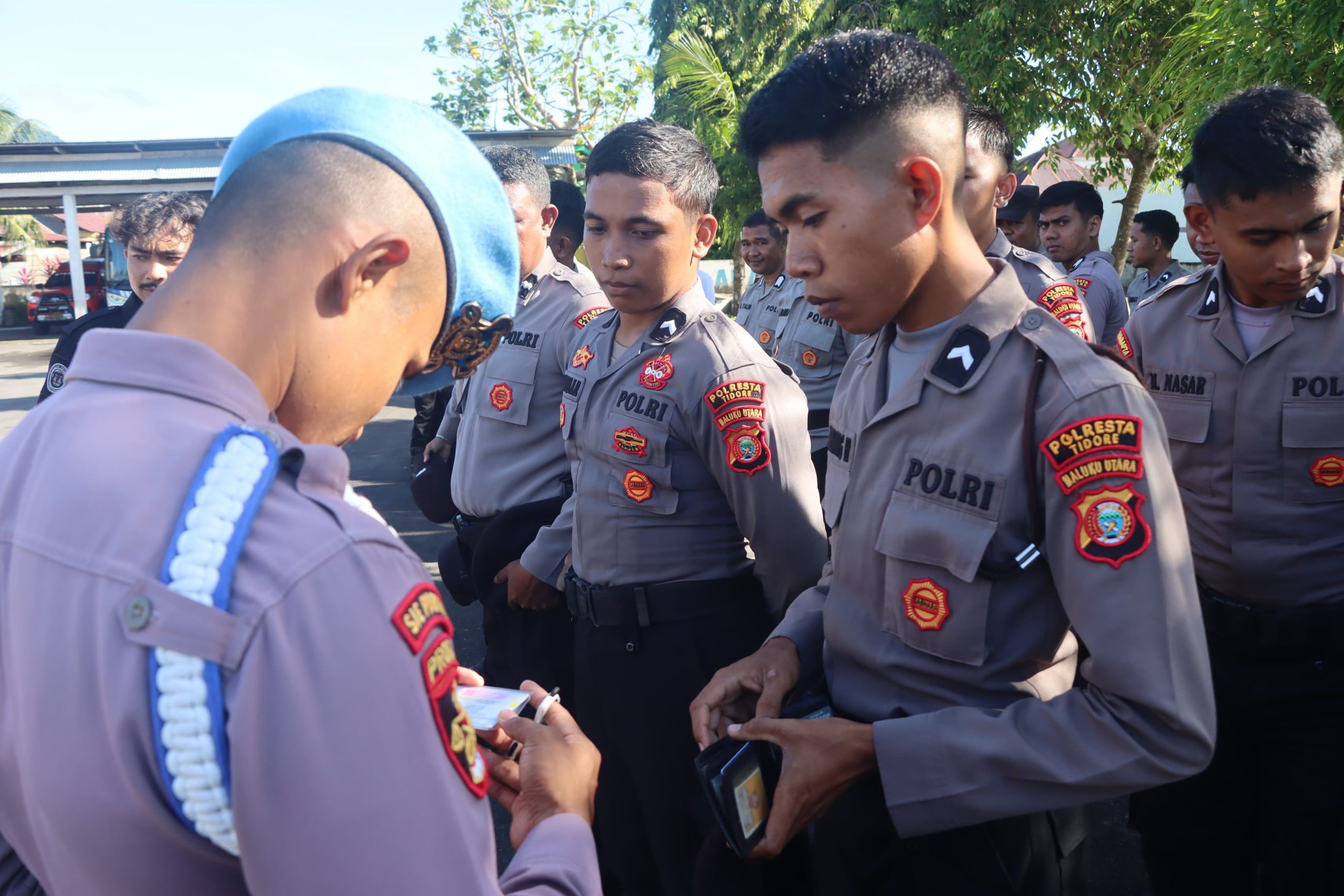 Kegiatan yang berlangsung di Lapangan Apel Polresta Tidore tersebut dipimpin langsung oleh Kasi Propam Polresta Tidore, IPTU La Ode Alitara, S.H., M.H. Pemeriksaan meliputi sikap tampang, kerapian seragam, serta kelengkapan administrasi pribadi seperti SIM, KTA, dan identitas diri lainnya.