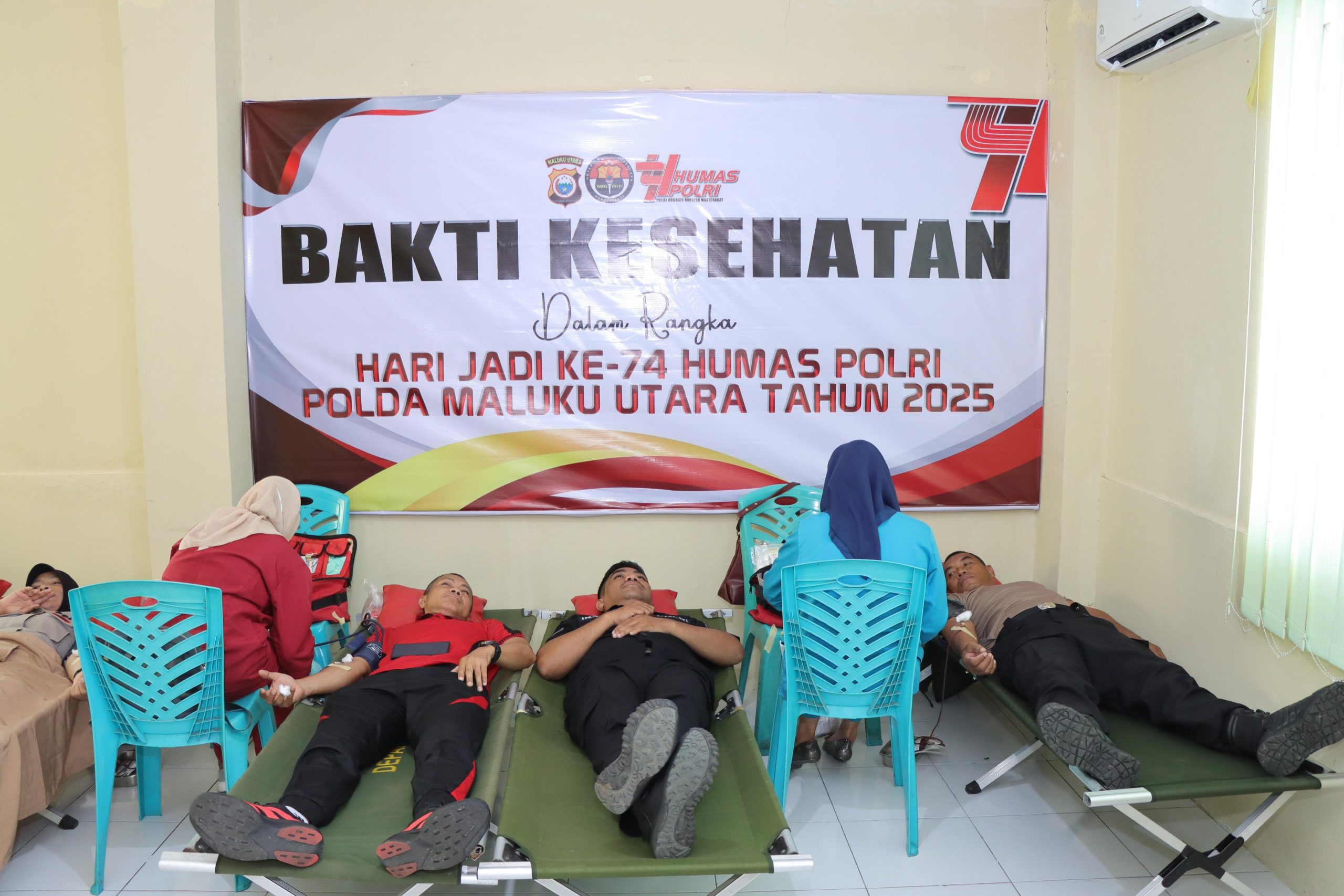 HUMAS POLDA MALUT – Dalam rangka memperingati Hari Jadi ke-74 Humas Polri, Bidang Hubungan Masyarakat (Bidhumas) Polda Maluku Utara menggelar kegiatan bakti kesehatan berupa donor darah di Rumah Sakit Bhayangkara Tk. IV Ternate, Rabu (22/10/2025).