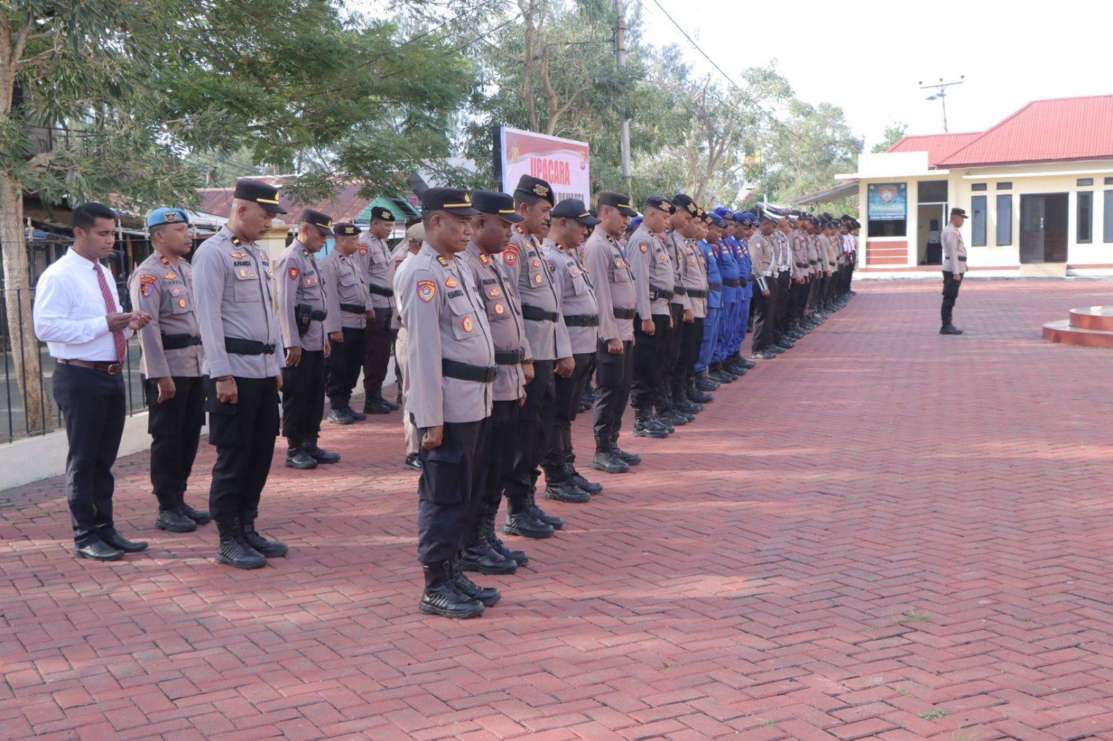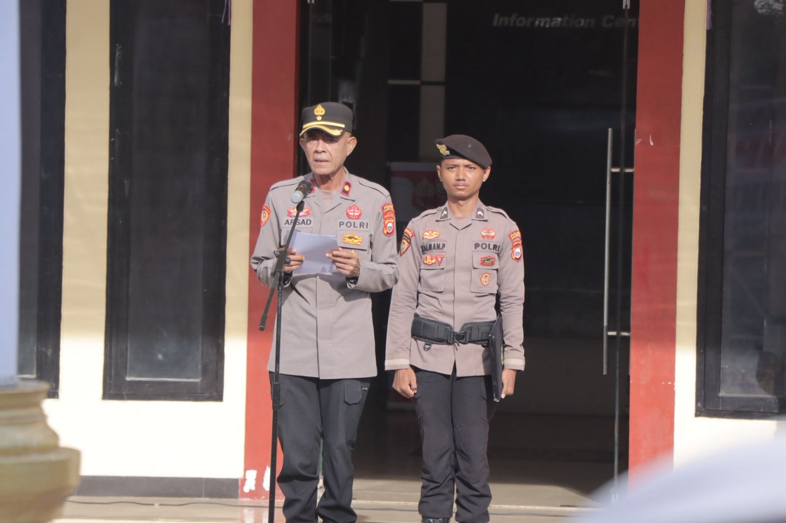 Wakapolres Kepulauan Sula Kompol Arsad Ali Noh, S.H., bertindak sebagai Inspektur Upacara dalam acara yang dihadiri seluruh Pejabat Utama (PJU) dan personel Polres setempat.