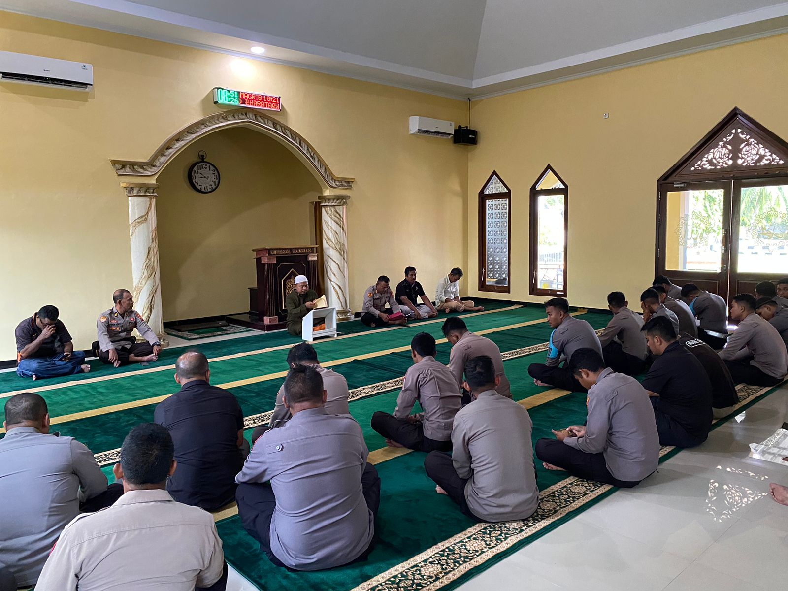 “Melalui kegiatan ini diharapkan seluruh personel dapat memperkuat keimanan, memperbaiki akhlak, dan meningkatkan semangat dalam melaksanakan tugas kepolisian dengan penuh tanggung jawab dan kejujuran,” ujarnya.