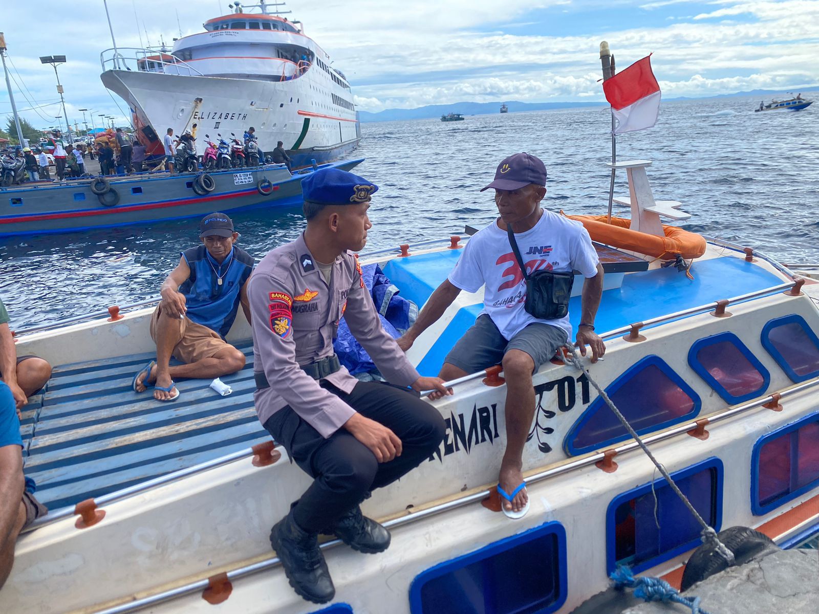 Humas Polri – Personel Satuan Polairud Polda Maluku Utara melaksanakan kegiatan Polisi Masyarakat (Polmas) di Perairan Pelabuhan Sped Bastiong Ternate Selatan, Jumat, (24/25)