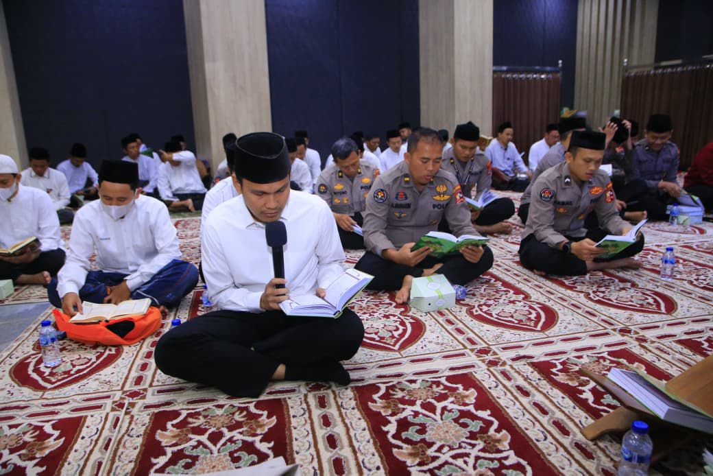 Jakarta. Divisi Humas Polri menggelar khataman Al-Qur’an menjelang peringatan hari jadi ke-74. Khataman ini melibatkan 74 orang Tahfiz Quran dari sejumlah pesantren beserta personel anggota Divhumas Polri.