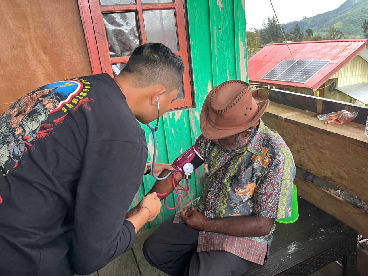 Sinak, Puncak — Dalam upaya mempererat hubungan dengan masyarakat sekaligus menjaga kesehatan warga di wilayah pegunungan, Satgas Operasi Damai Cartenz melaksanakan kegiatan pemeriksaan kesehatan dan momen humanis dengan berinteraksi kepada masyarakat Distrik Sinak, Kabupaten Puncak, Jumat (24/10/2025).