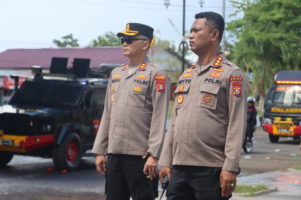 Kapolresta Tidore AKBP Jeru Budiharto, S.I.K., M.I.K. menghadiri kegiatan Simulasi Sistem Pengamanan Markas Komando (Sispam Mako) yang diselenggarakan oleh Polda Maluku Utara, bertempat di Mako Polda Maluku Utara, Kecamatan Oba Utara, Kota Tidore Kepulauan, Kamis (30/10/2025).