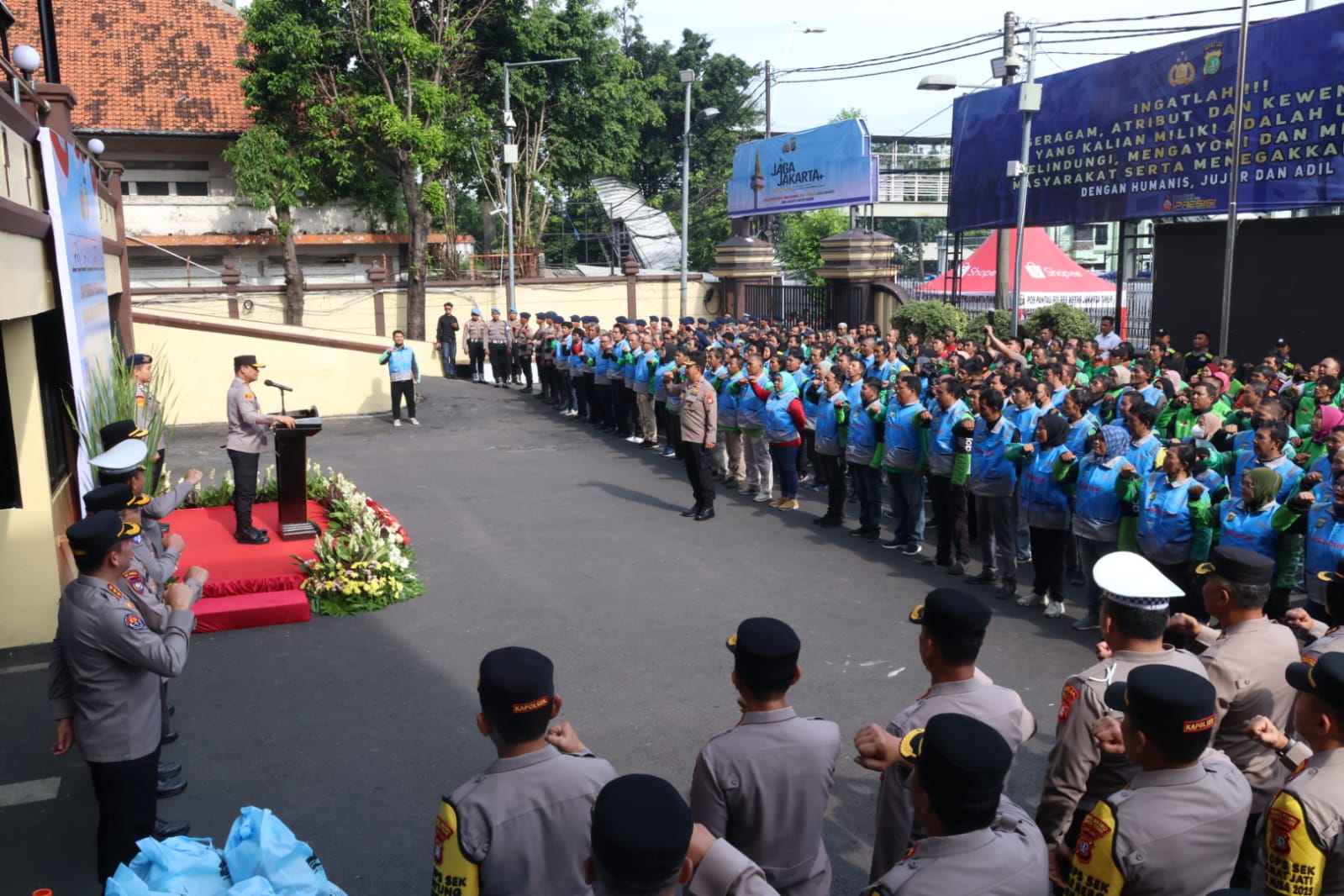 “Rekan-rekan sekalian, tadi pagi kita sudah melaksanakan apel pemberian penghargaan kepada salah satu rekan kita, mitra kita, saudara kita Pak Rahmat Fauzi yang mana beliau berprofesi sebagai ojol (ojek online),” kata Asep kepada wartawan di Jakarta, Senin (3/11/2025).