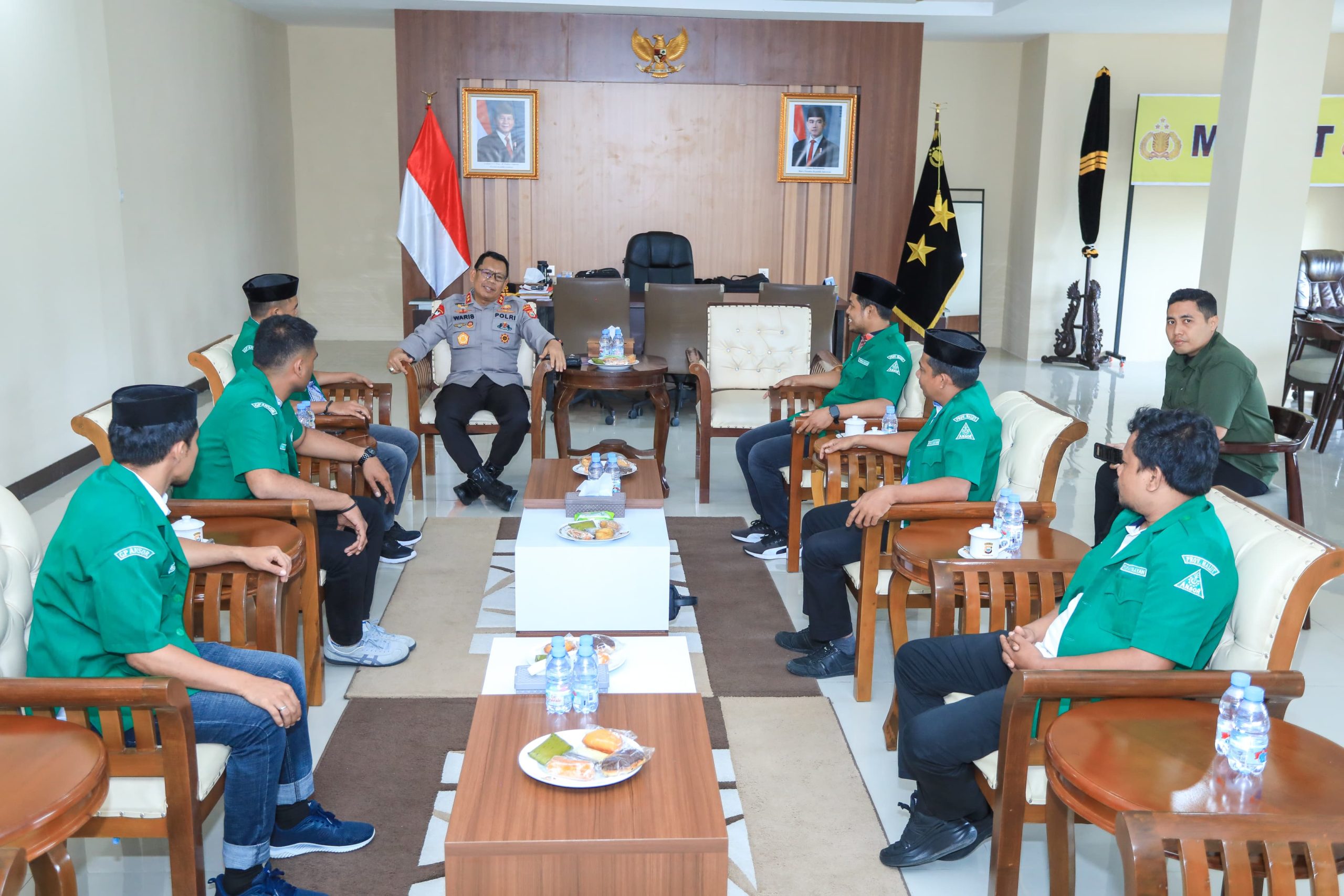 Pertemuan berlangsung di ruang kerja Kapolda dan dihadiri Ketua PW GP Ansor Malut, Syarif Abdullah, beserta sejumlah pengurus.