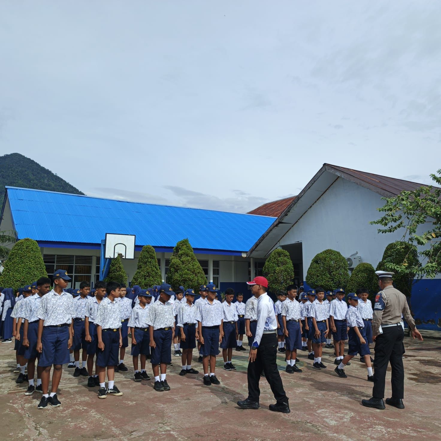 Upaya menciptakan generasi muda yang sadar dan disiplin dalam berlalu lintas terus digencarkan Satuan Lalu Lintas (Sat Lantas) Polres Halmahera Barat. Melalui program Keamanan Sekolah, personel Sat Lantas menyambangi SMP Negeri 1 Halbar pada Rabu (12/11).