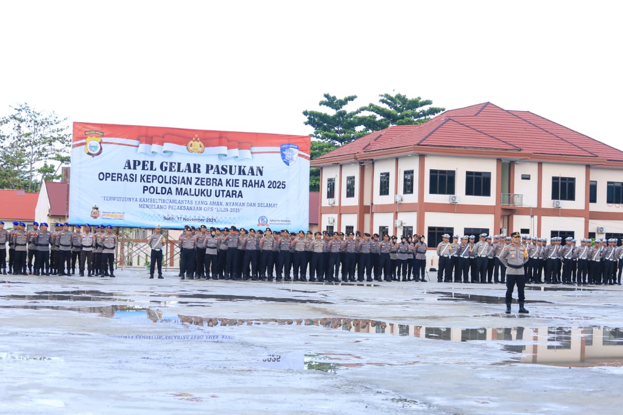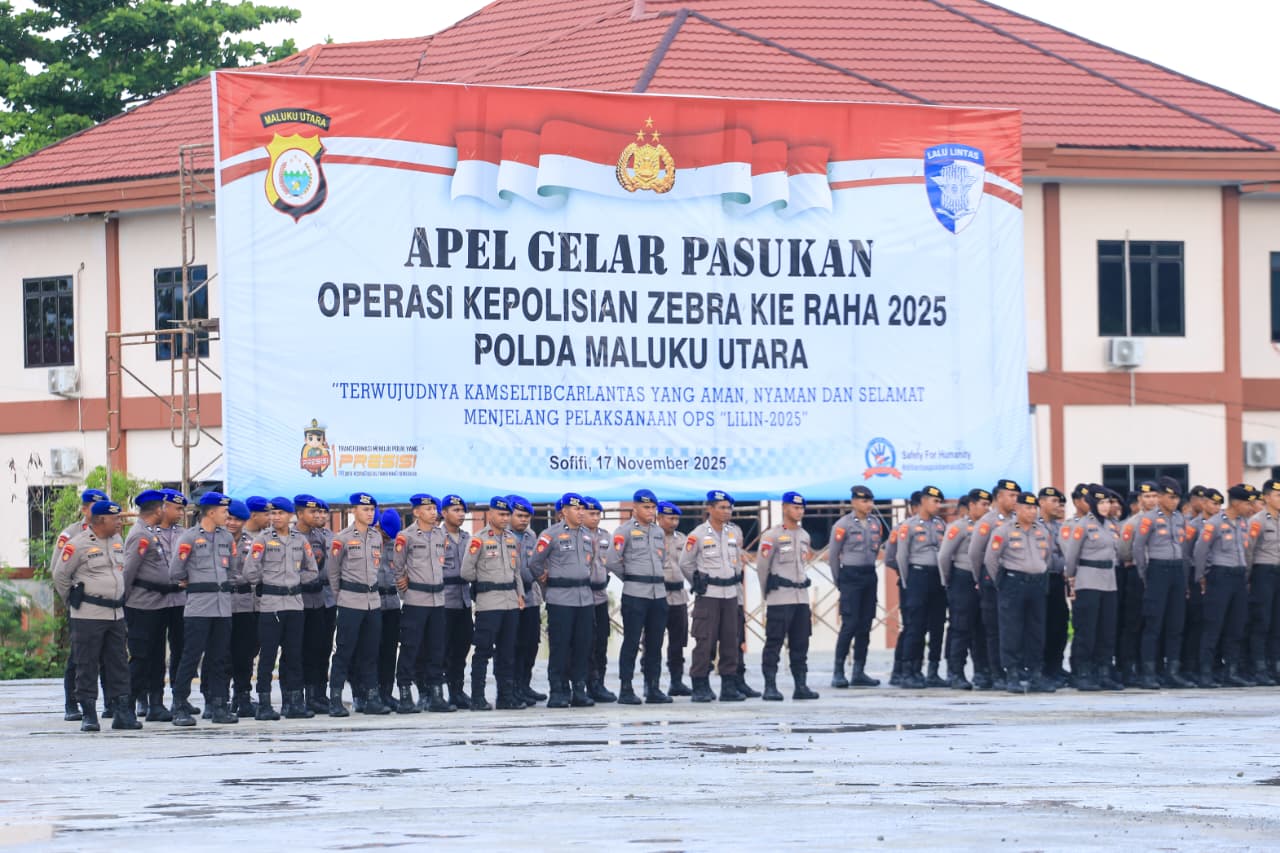 Humas Polri – Kepala Kepolisian Daerah Maluku Utara, Irjen Pol. Drs. Waris Agono, M.Si, memimpin pelaksanaan Apel Gelar Pasukan Operasi Kepolisian “Zebra Kie Raha 2025” Polda Maluku Utara.