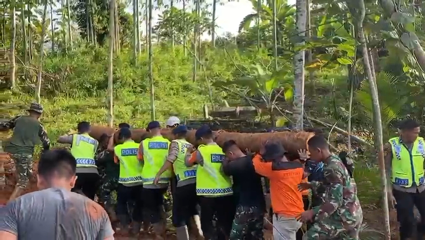 Sepanjang hari, tim Brimob tidak hanya melakukan pencarian, tetapi juga melakukan pemotongan kayu untuk jalur ekskavator, evakuasi kendaraan yang tertimbun.