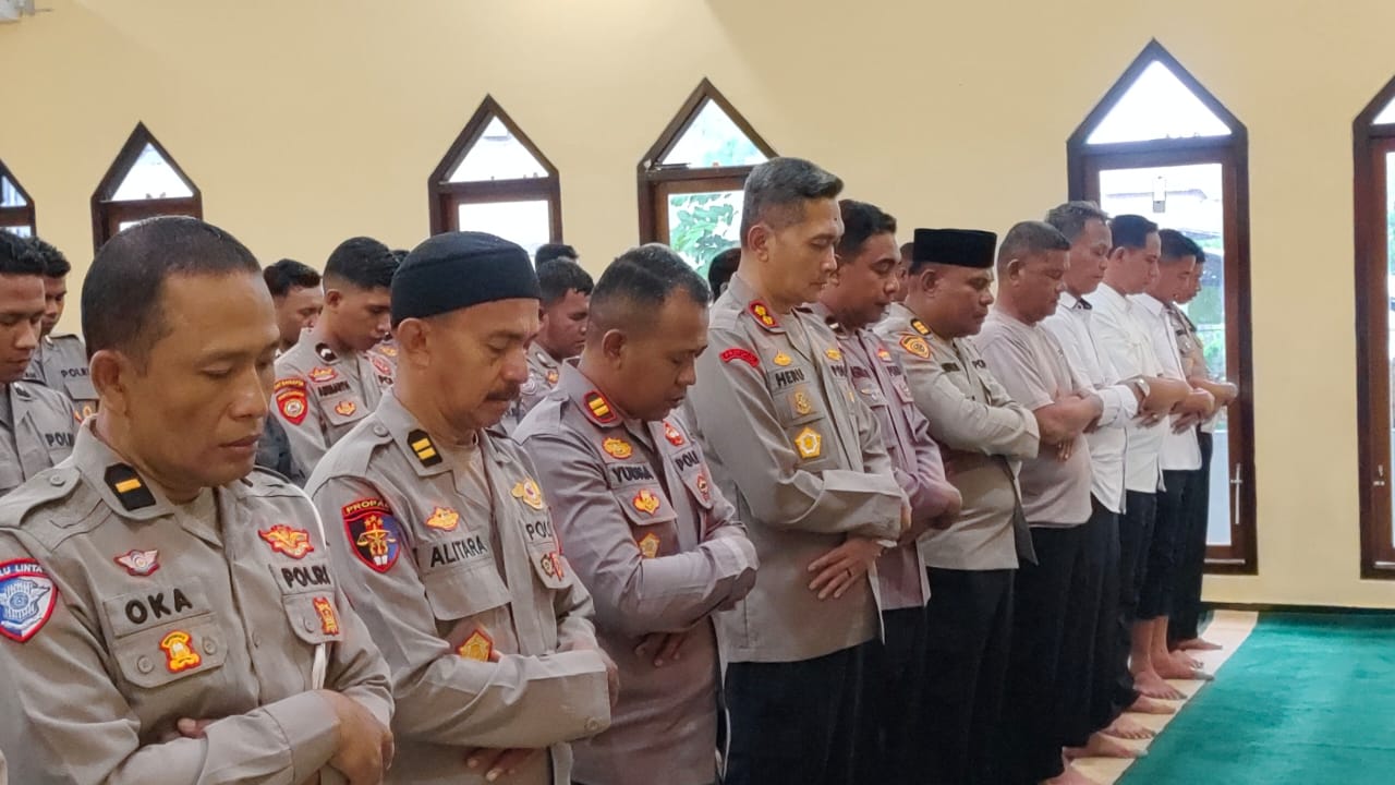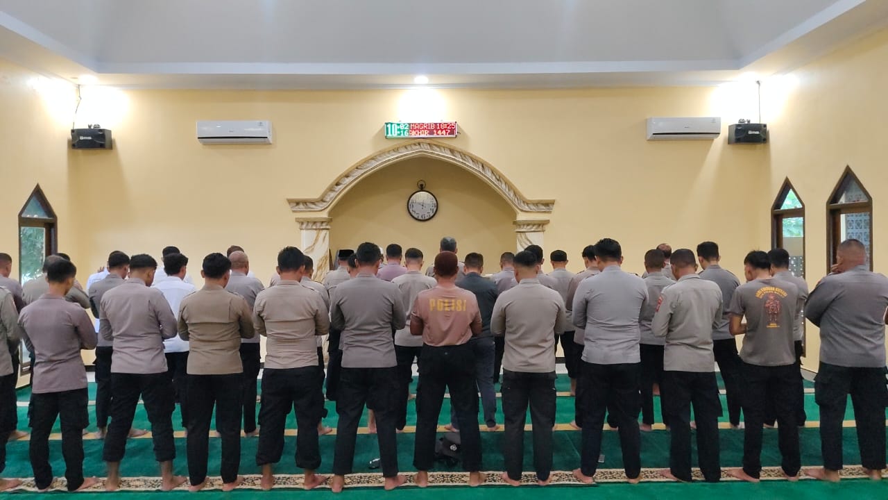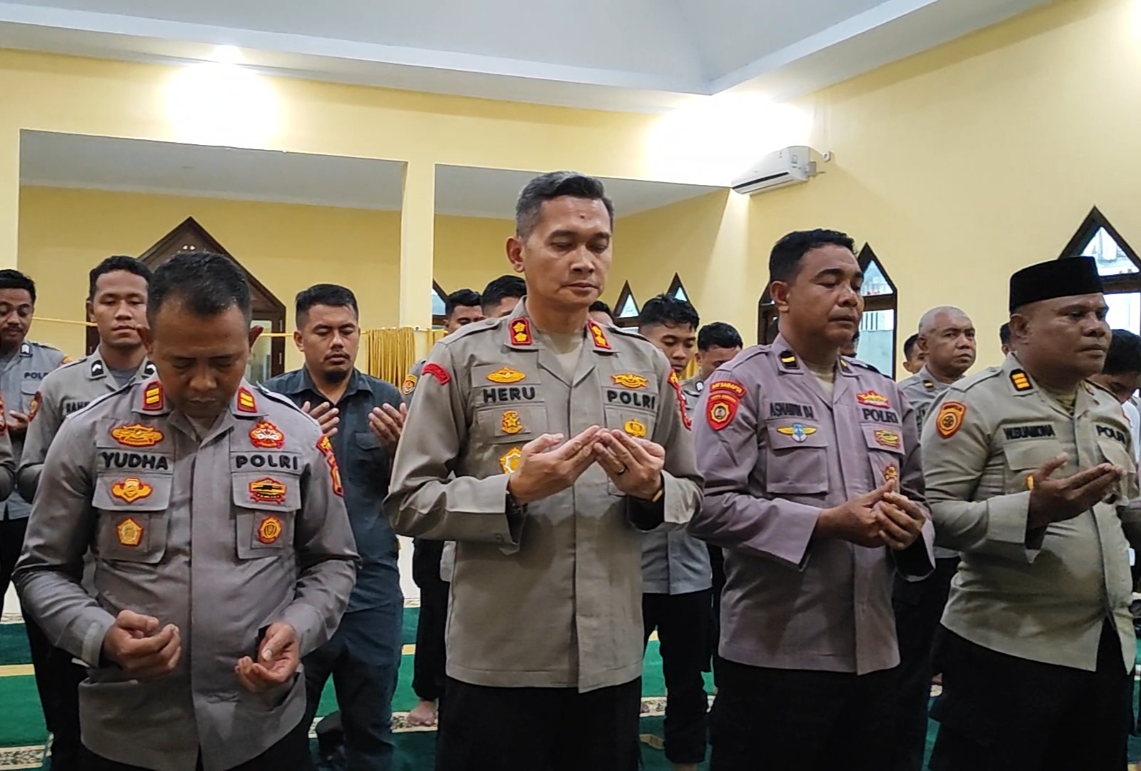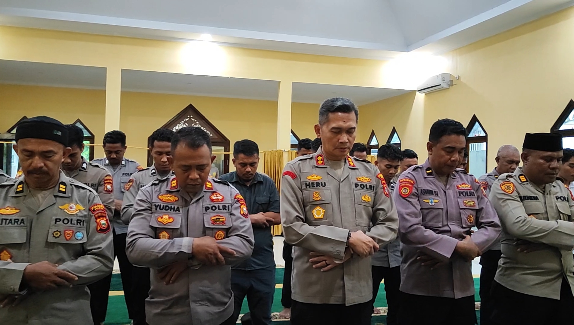 Sholat Ghaib dipimpin oleh Kasat Binmas Polresta Tidore AKP Suleman Fatah dan diikuti oleh Kapolresta Tidore AKBP Heru Budiharto, S.I.K., M.I.K., para Pejabat Utama (PJU) Polresta Tidore, serta seluruh personel Polresta Tidore.