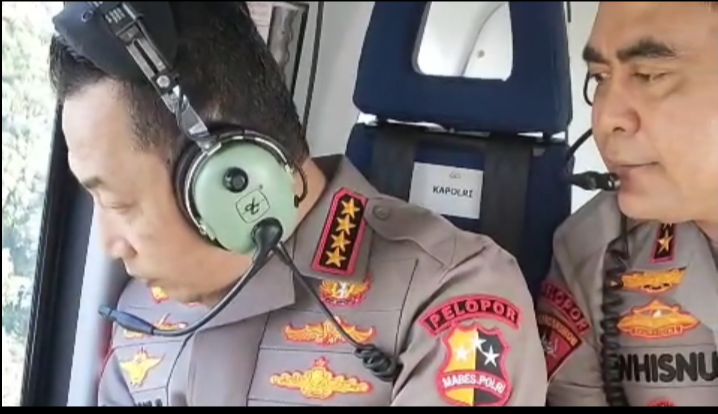 Sumatera Utara – Kapolri Jenderal Listyo Sigit Prabowo bersama Ketua Umum Bhayangkari melakukan patroli udara menggunakan helikopter untuk memantau langsung situasi bencana banjir dan tanah longsor di wilayah Sumatera Utara, Senin (1/12/2025). Dalam peninjauan tersebut, Kapolri melihat secara menyeluruh dampak kerusakan akibat bencana, termasuk infrastruktur vital yang tampak terputus total dan tergerus derasnya arus.