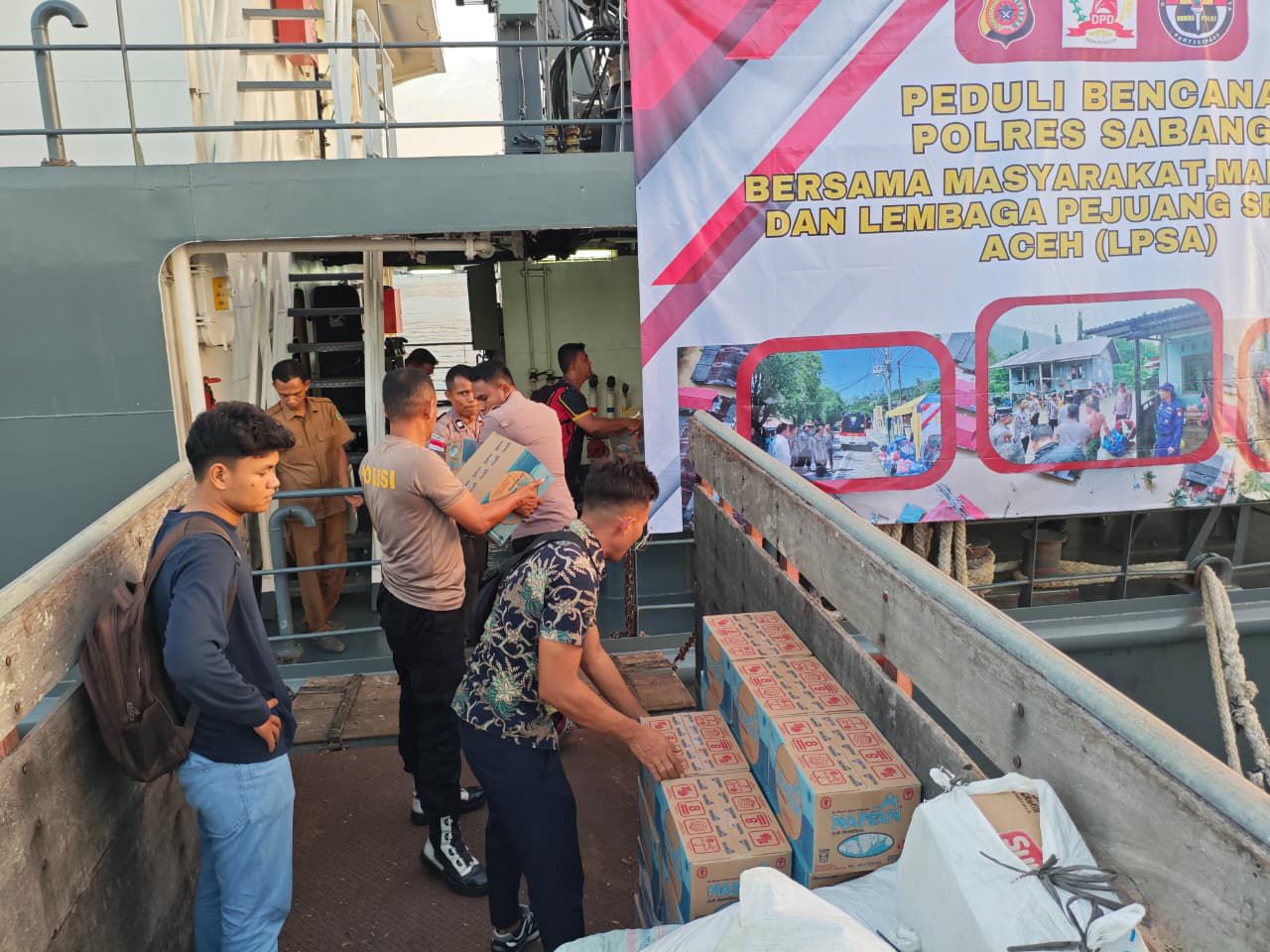 Seluruh logistik diberangkatkan menuju Pelabuhan Krueng Geukuh, Lhokseumawe, sebelum disalurkan ke wilayah terdampak. Personel Polres Sabang bersama masyarakat turut melakukan proses pengemasan dan pemuatan barang ke atas kapal.