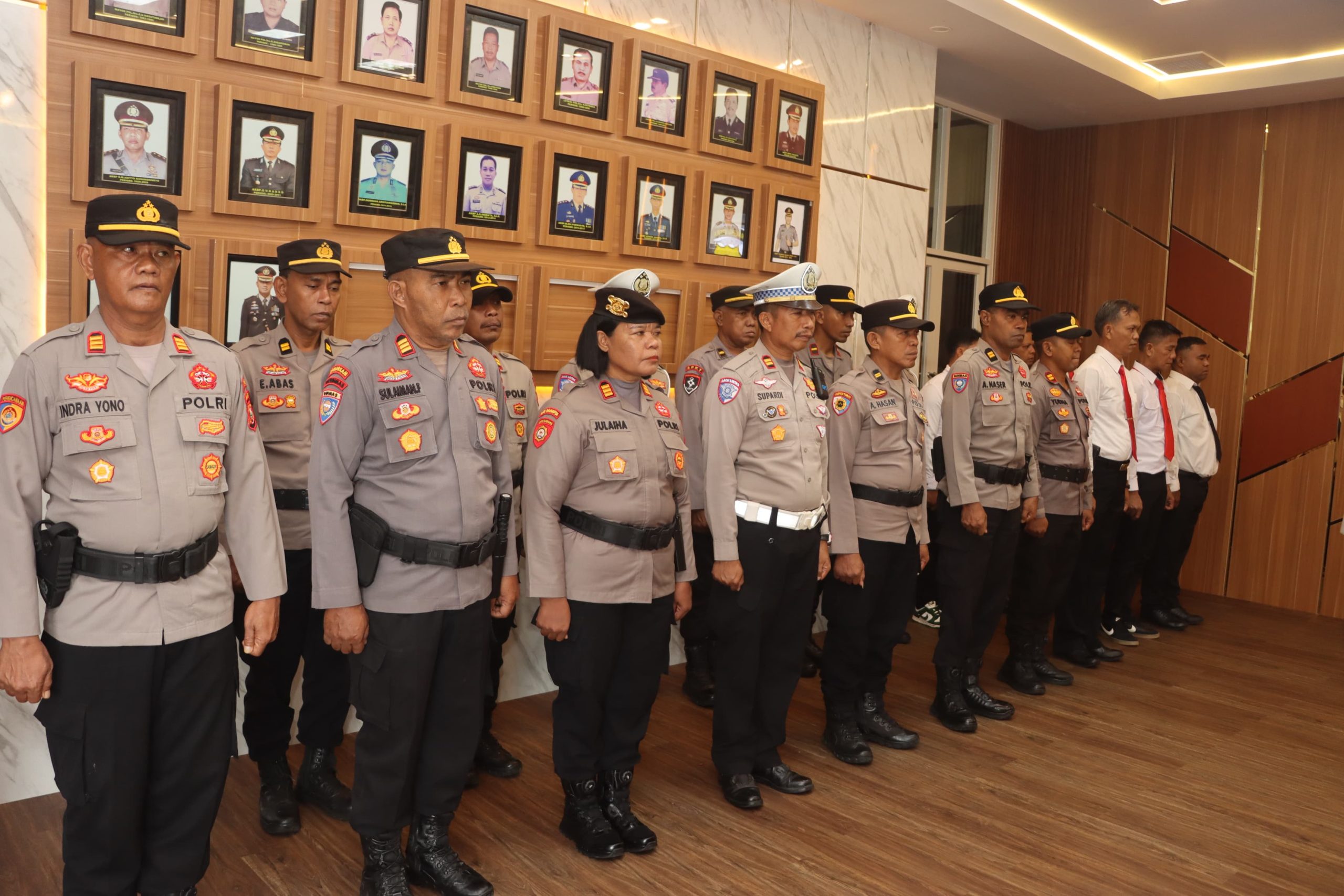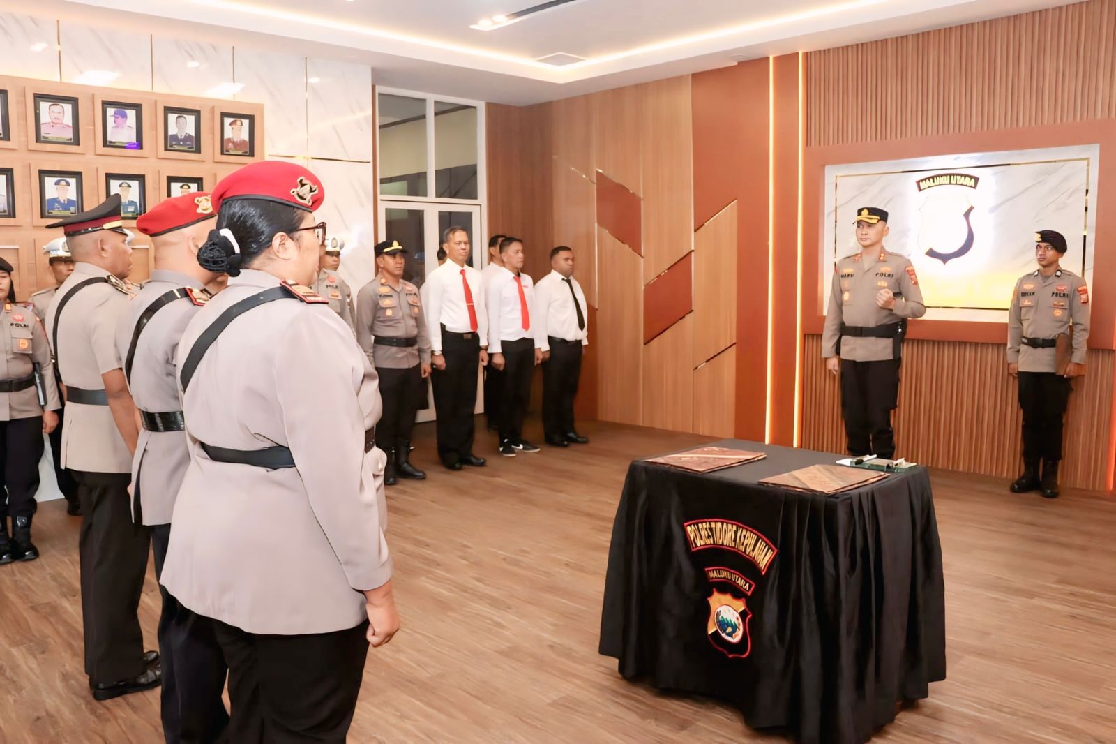 Upacara Sertijab dihadiri oleh Pejabat Utama (PJU) Polresta Tidore, para Kapolsek jajaran, serta Pengurus Bhayangkari Cabang Kota Tidore.