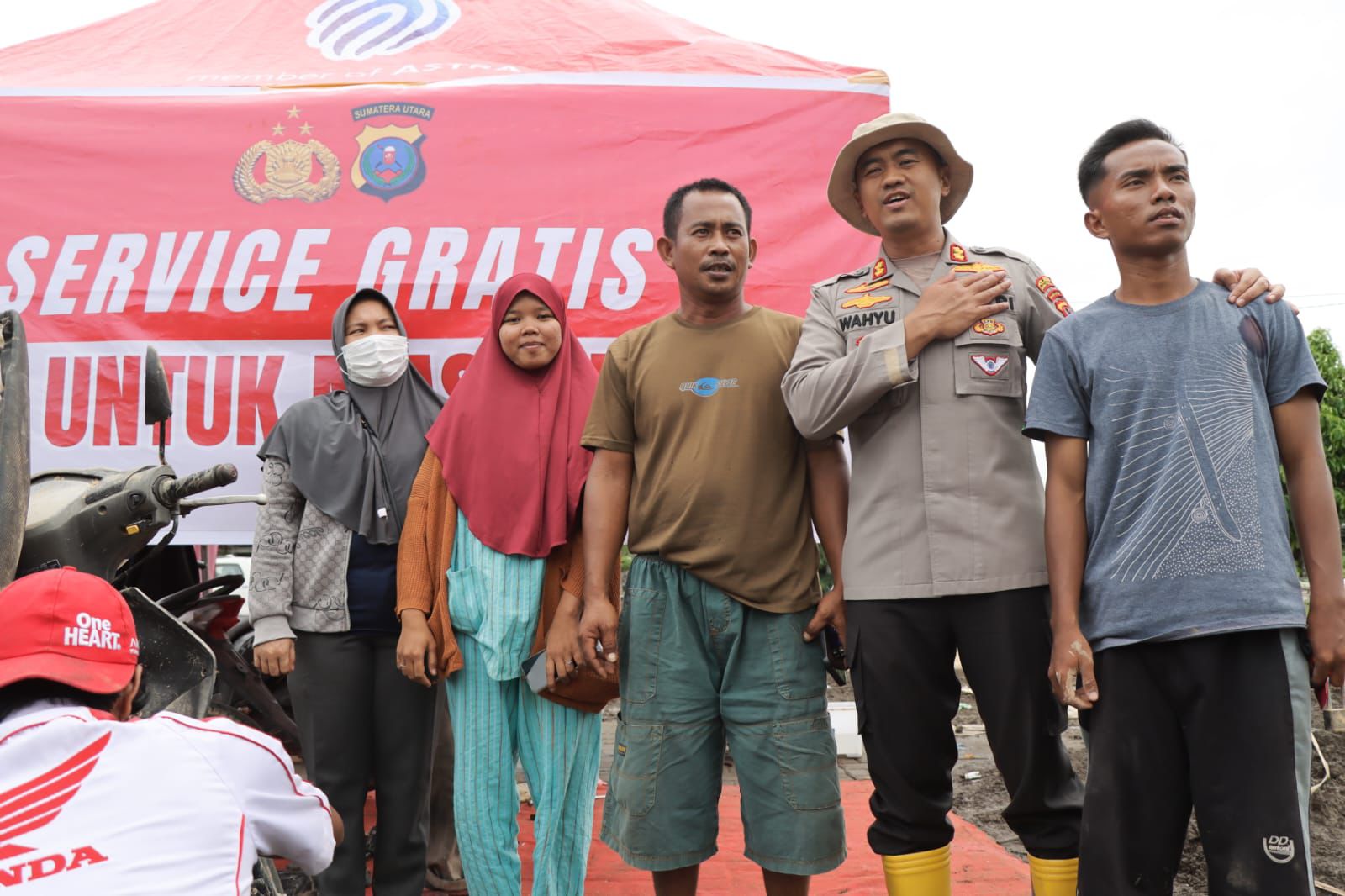 “Program servis motor gratis ini kami laksanakan untuk meringankan beban masyarakat yang terdampak pascabencana. Kami memahami bahwa banyak warga yang kehilangan harta benda, pekerjaan, bahkan tempat tinggal. Karena itu, Polri ingin hadir bukan hanya memberikan bantuan materi, tetapi juga memberikan harapan agar masyarakat bisa bangkit. Mobilitas harus pulih, ekonomi harus bergerak, dan kita harus saling menguatkan,” ujar AKBP Wahyu Endrajaya.